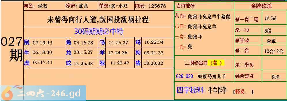 六合彩027期:30码期期特