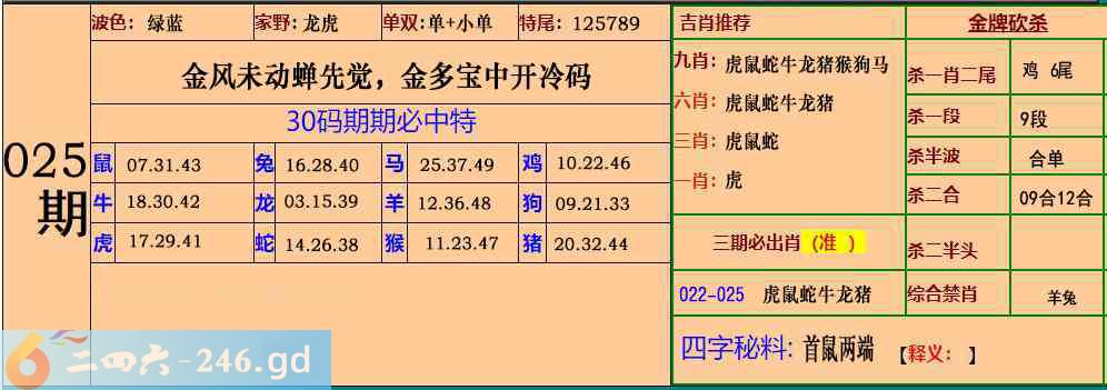 六合彩025期:30码期期特
