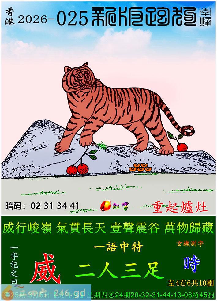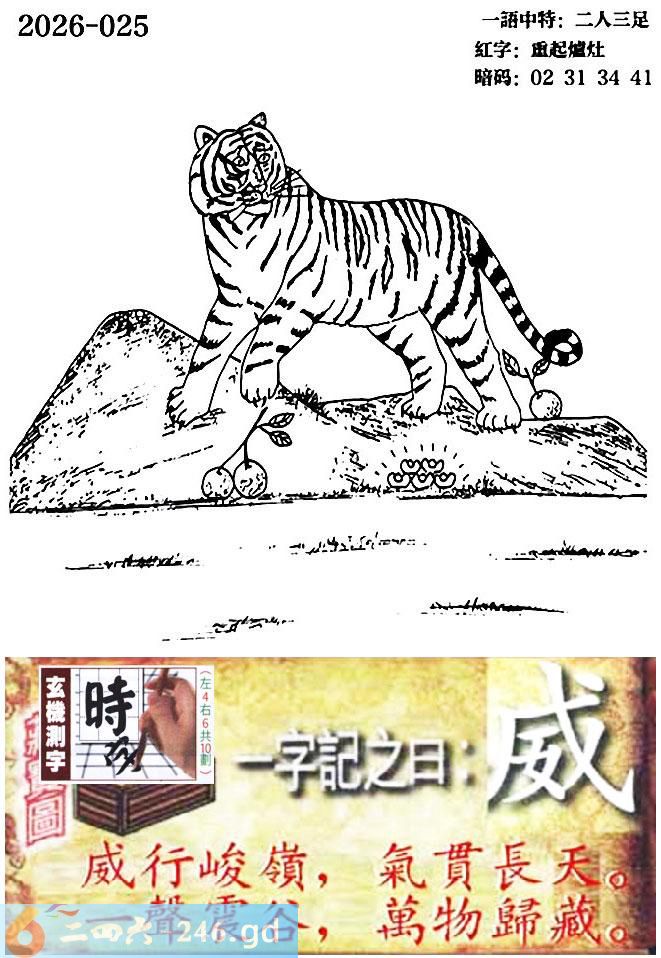 025期跑狗一字記之曰:【威】 威行峻嶺,氣貫長天。 壹聲震谷,萬物歸藏。 玄機測字:《時》 一語中特:二人三足
