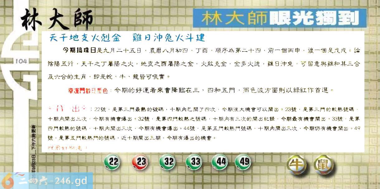 六合彩【104期】内部来料(实战投注发表区)已公开】