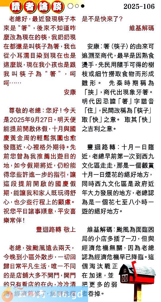 第一零六期讀者論談