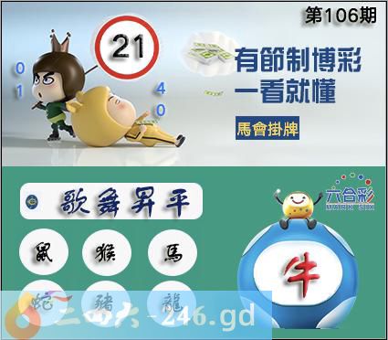 106期正版彩图挂:21爆:牛挂牌成语:歌舞升平挂牌出肖:鼠猴马蛇猪龙