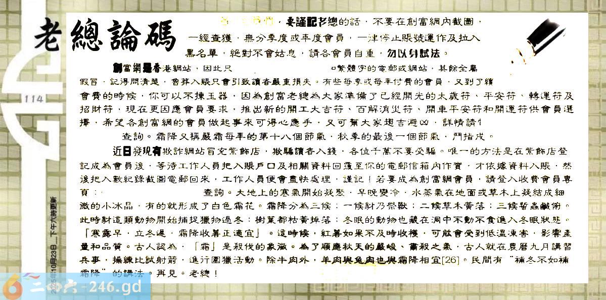 六合彩114期:六合皇金句/老总论码/萧公子/林大师/五行夺码/老总信箱截图