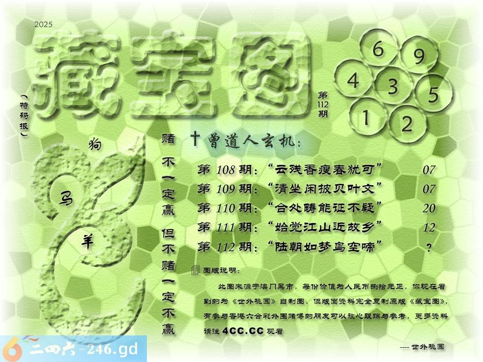 112期藏寶圖 新:陆朝如梦鸟空啼 老:芳意潜消又壹春 禁:猪禁:8尾玄機字:《饩》