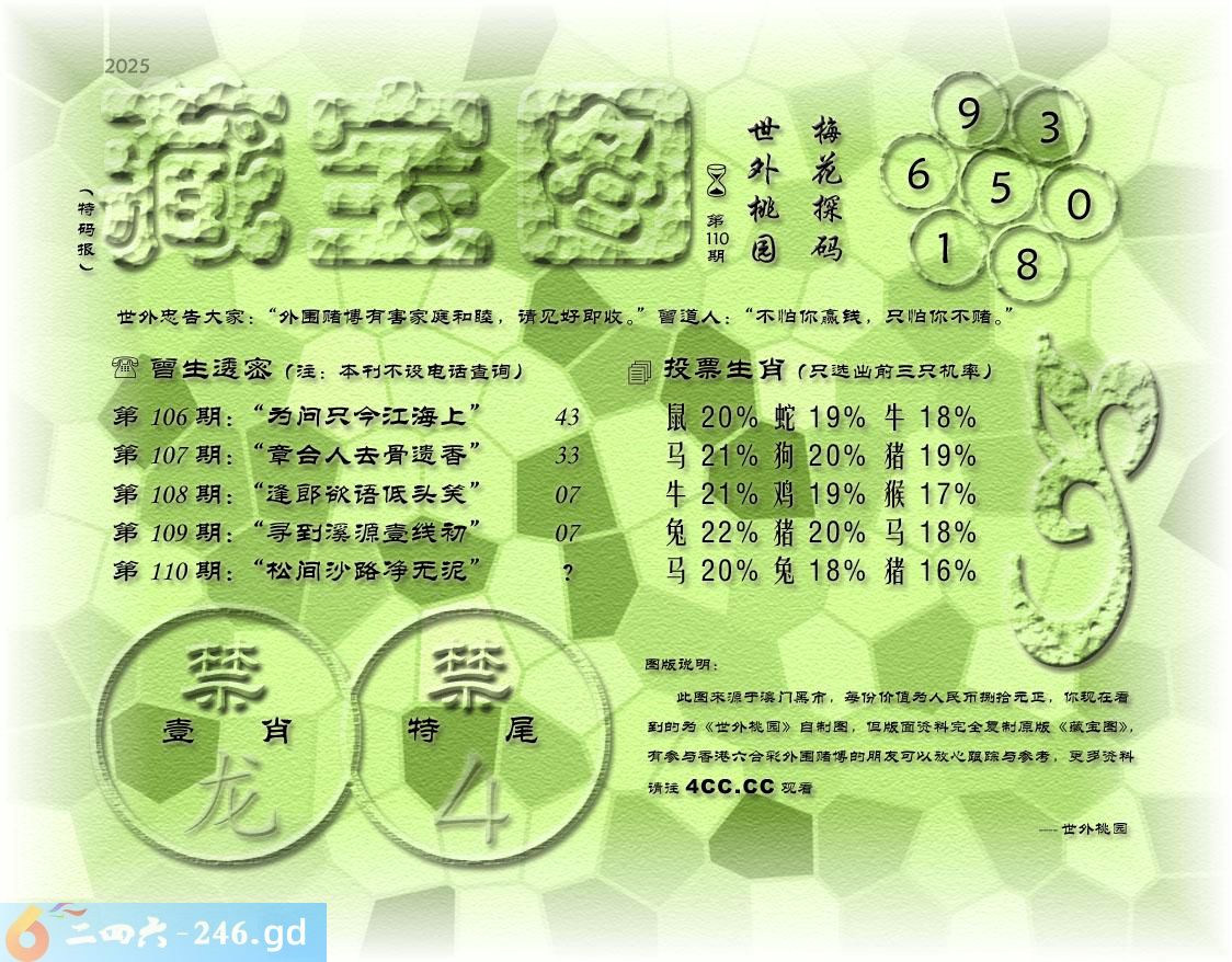 六合彩110期藏寶圖 新:合处畴能证不疑 老:松间沙路净无泥 禁:龙 禁:4尾 玄機字:《夙》