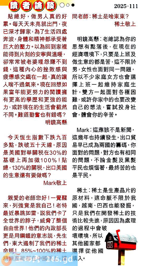 第一一一期讀者論談