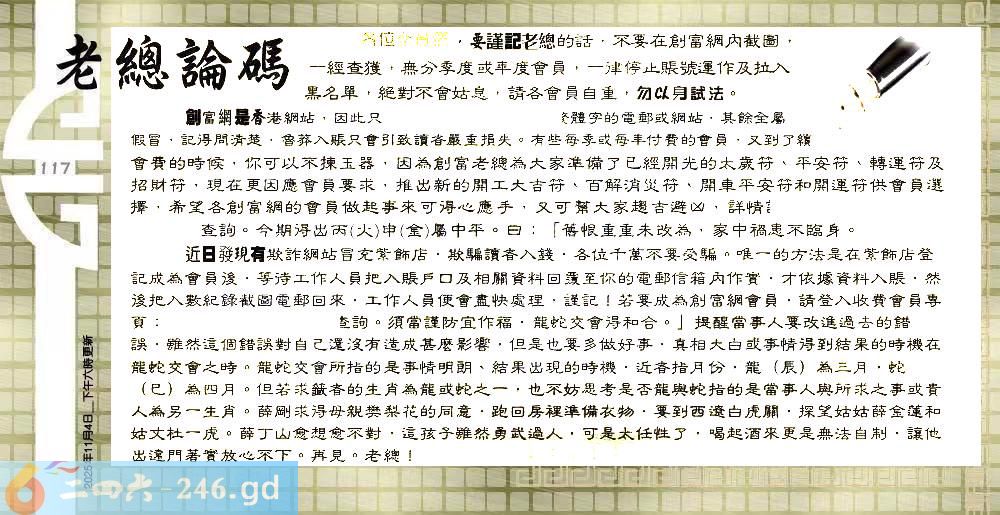 六合彩117期:六合皇金句/老总论码/萧公子/林大师/五行夺码/老总信箱截图