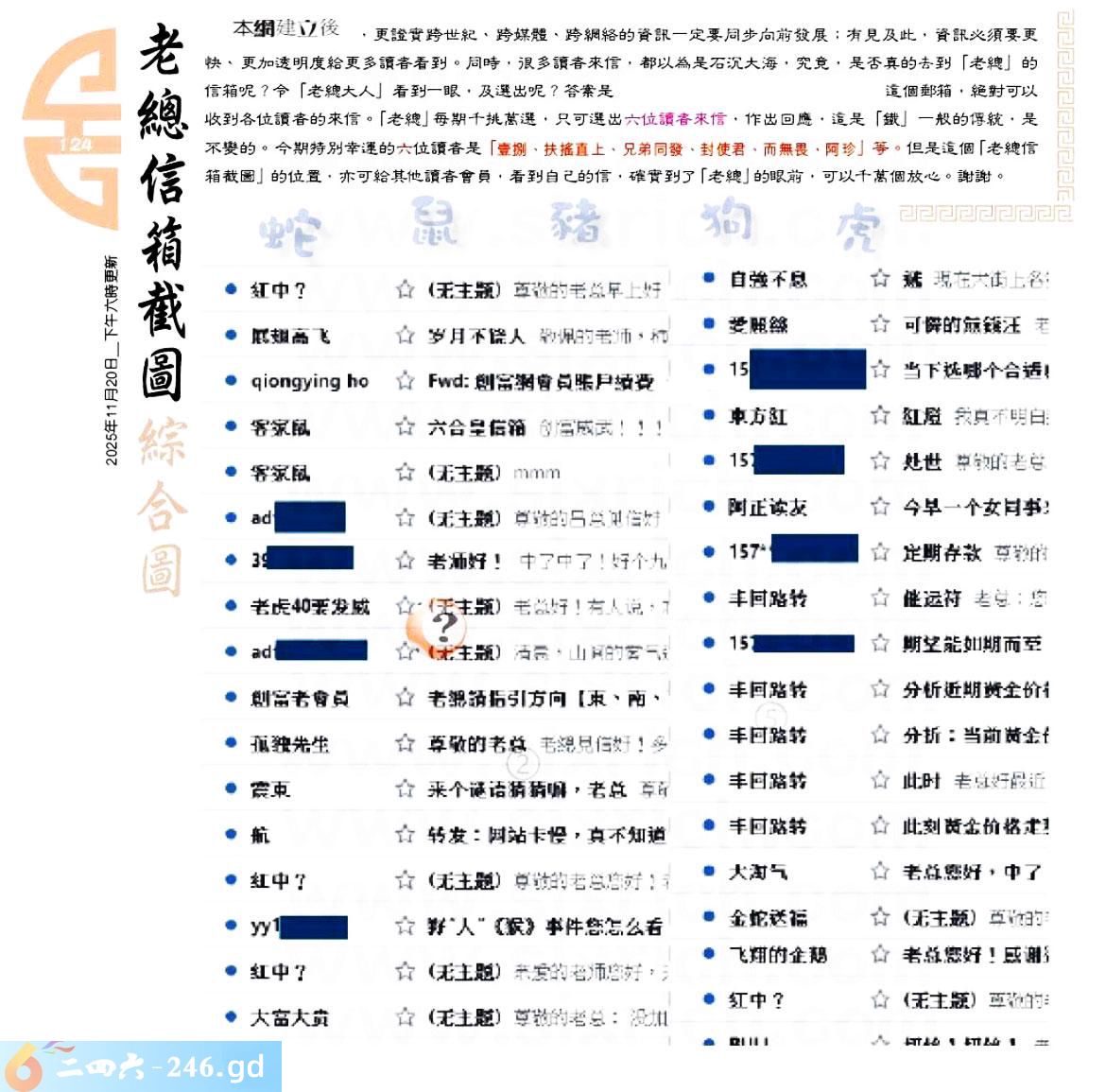六合彩124期:六合皇金句/老总论码/萧公子/林大师/五行夺码/老总信箱截图