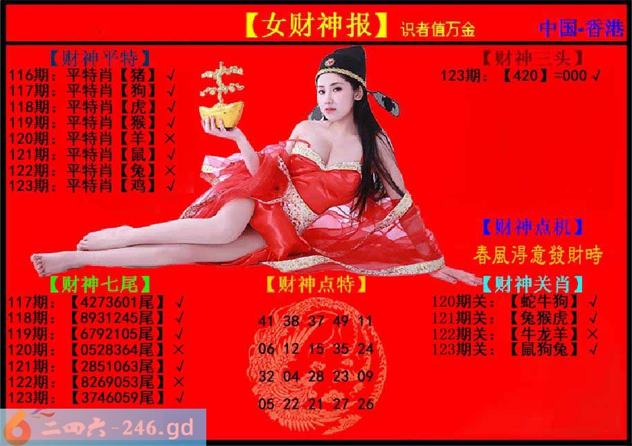 六合彩123期:女财神