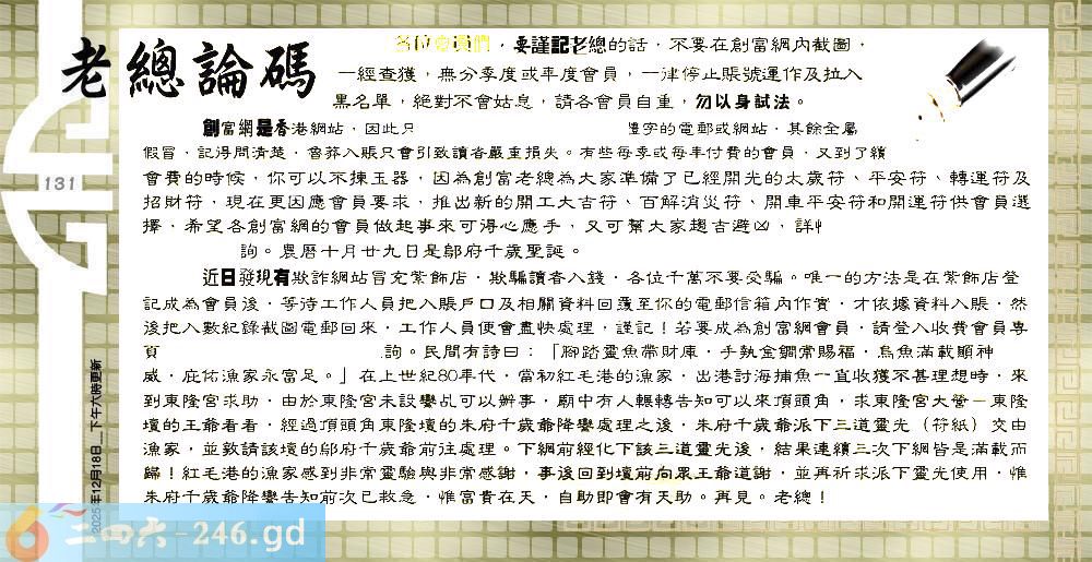 六合彩131期:六合皇金句/老总论码/萧公子/林大师/五行夺码/老总信箱截图