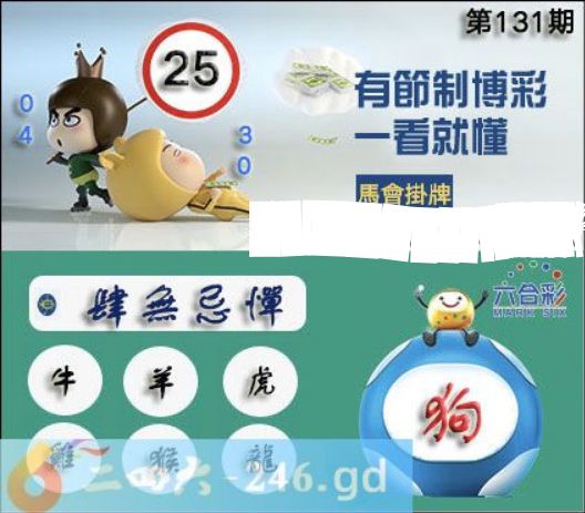 六合彩2025年131期正版彩图挂:25 爆:狗 挂牌成语:肆无忌惮 挂牌出肖:牛羊虎鸡猴龙