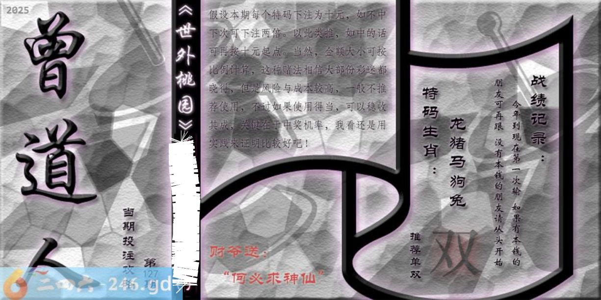 127期藏寶圖 新:好遣文星守躔次 老:毒虬相视振金环 禁:猴禁:8尾玄機字:《竺》 财爷送:“何必求神仙”