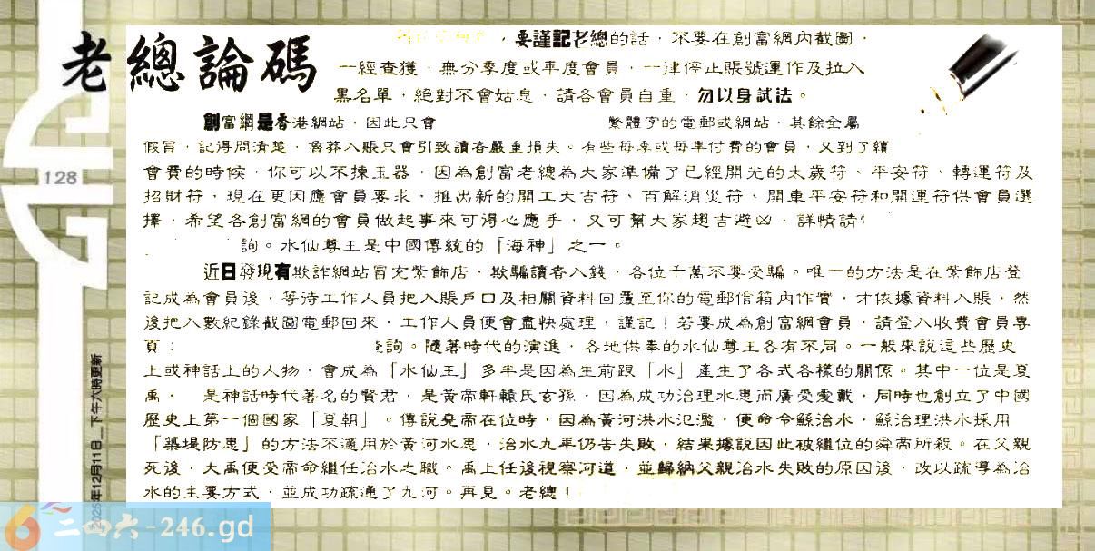 六合彩128期:六合皇金句/老总论码/萧公子/林大师/五行夺码/老总信箱截图