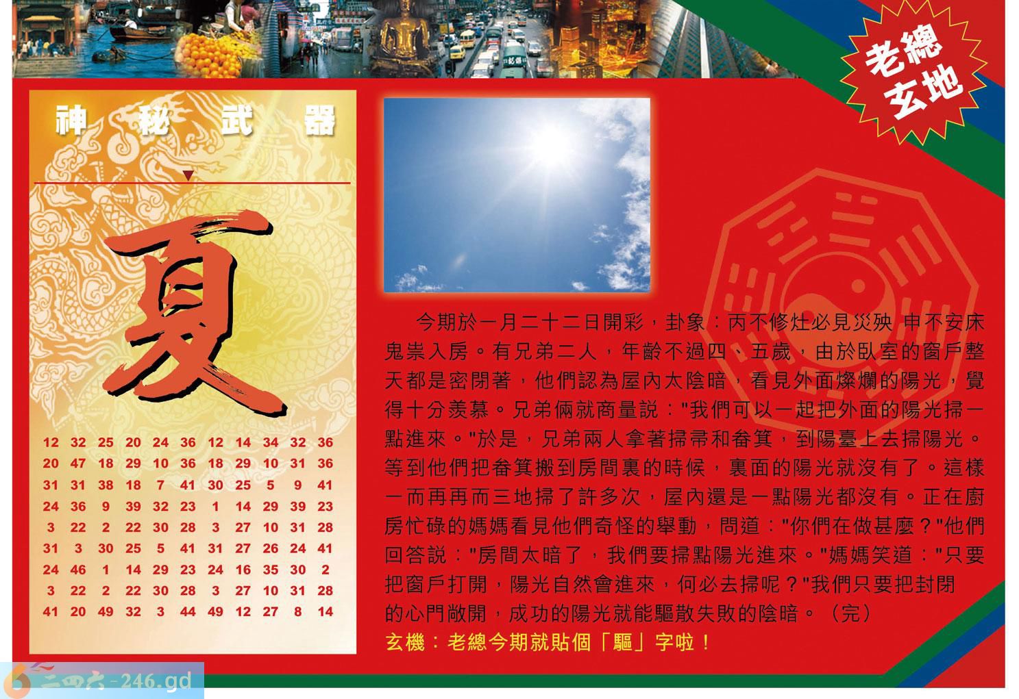 六合彩009期:跑狗玄機/密圖詩/粤彩三语/特碼后语/另版四字梅花诗/藏寶圖