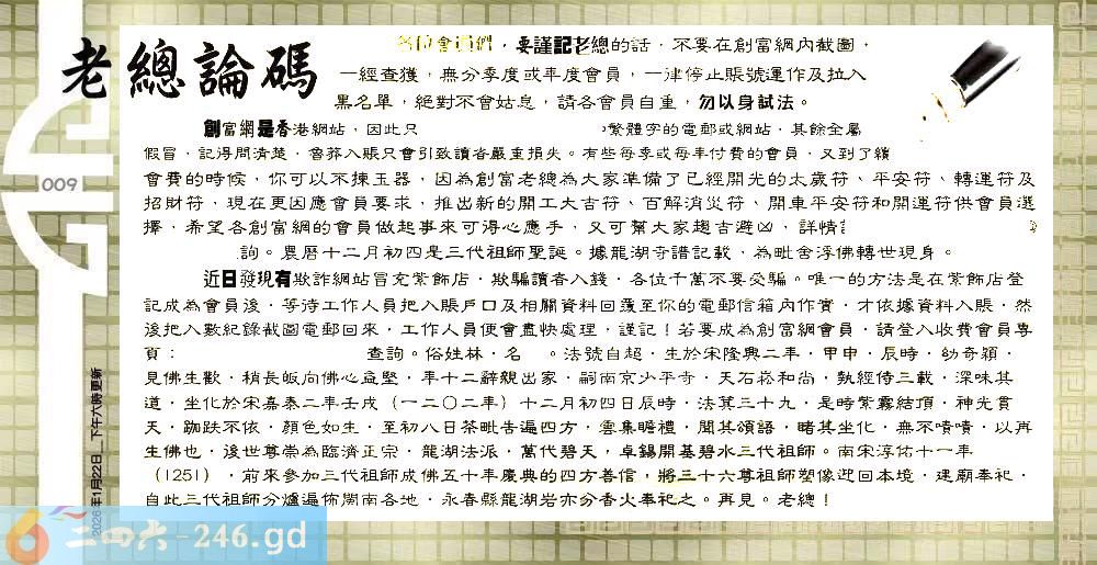 六合彩009期:六合皇金句/老总论码/萧公子/林大师/五行夺码/老总信箱截图