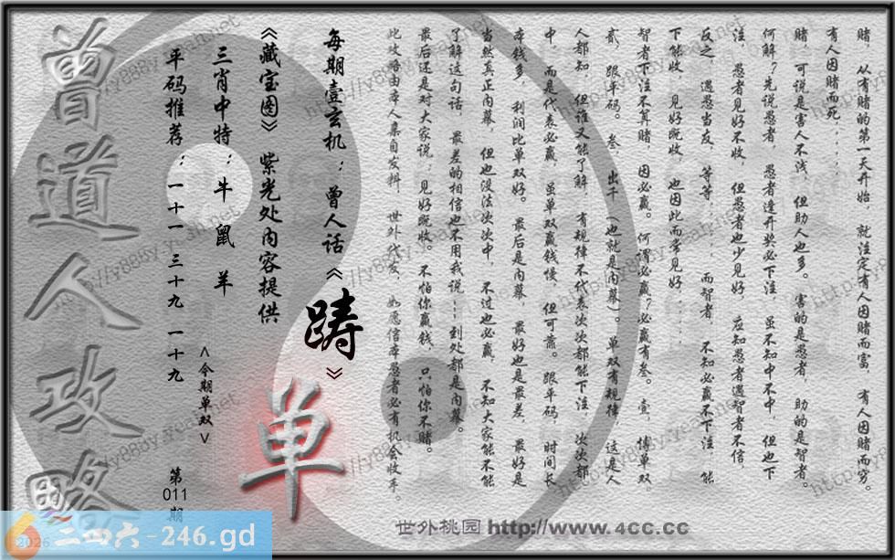011期藏寶圖 新:因想后湖题柱处 老:汉城黄柳映新帘 禁:虎禁:4尾玄機字:《踌》