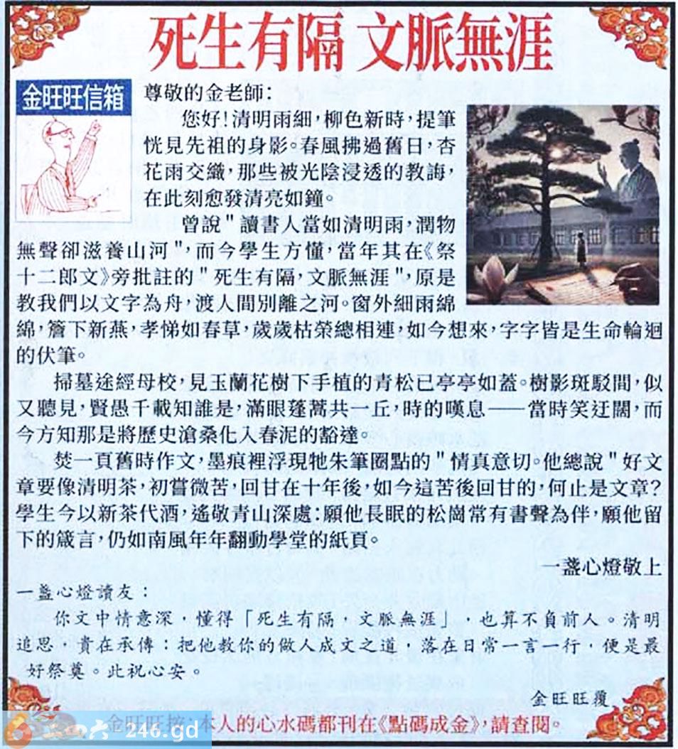 六合彩028期:金旺旺信箱彩民推荐→→《死生有隔 文脈無涯》