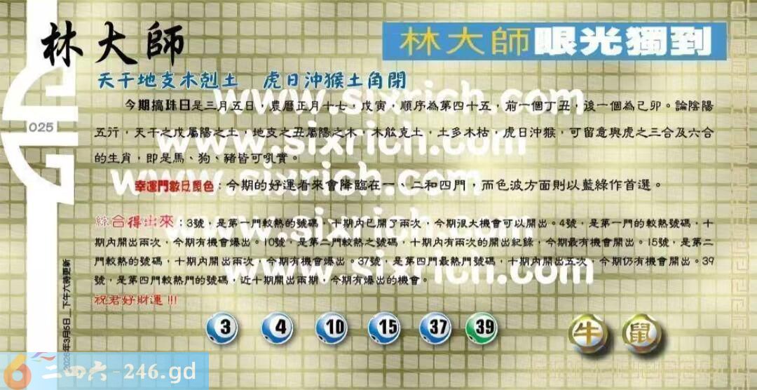 六合彩025期神奇四字:家大业大