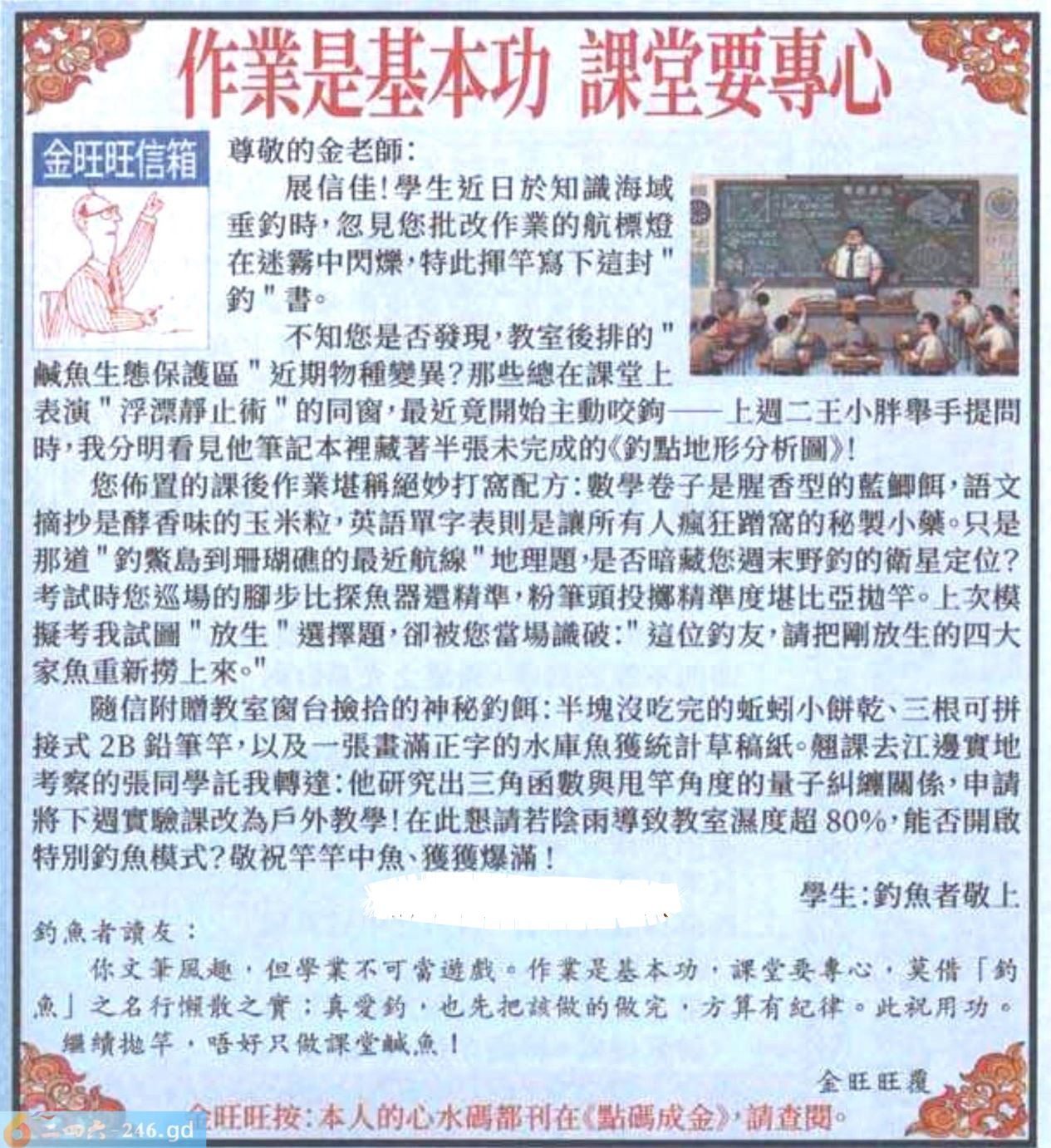 六合彩024期:金旺旺信箱彩民推荐→→《作業時基本功,課堂要專心》