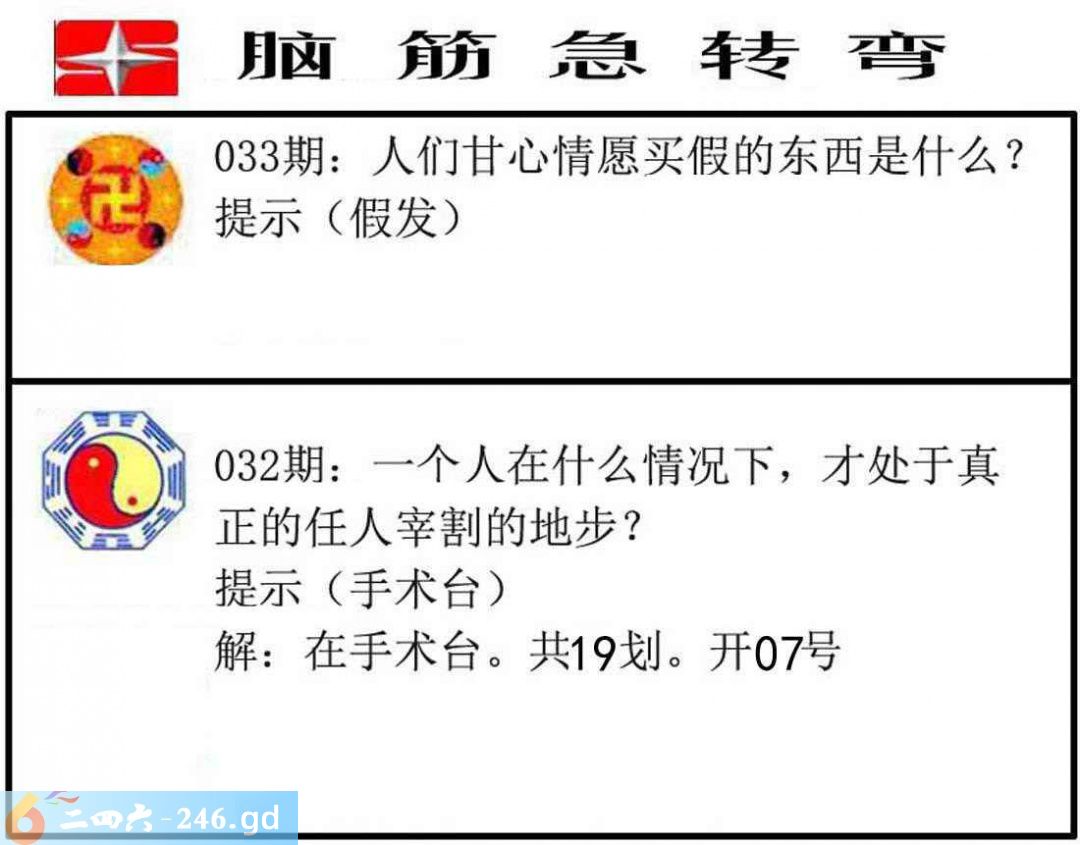 六合彩033期:脑筋急转弯