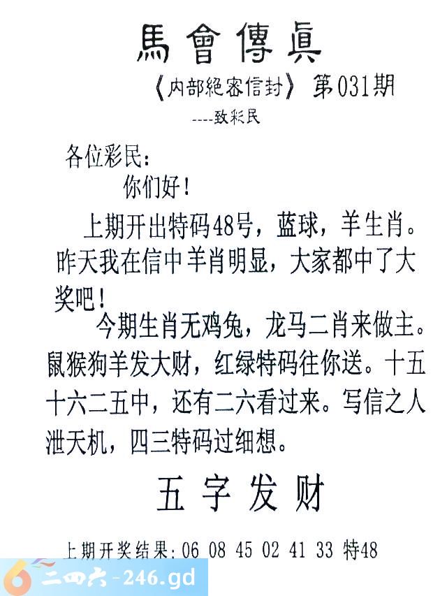 六合彩031期新报玄机(港版)A