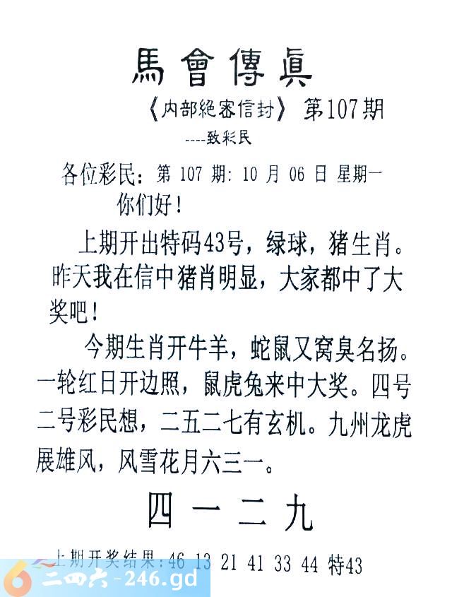 六合彩107期:首发推荐:≮馬會傳眞≯→(香港正版)