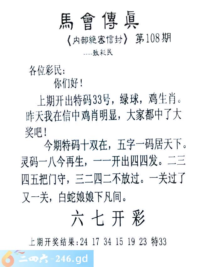 六合彩108期:首发推荐:≮馬會傳眞≯→(香港正版)