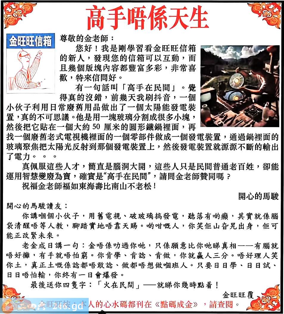 六合彩114期:金旺旺信箱彩民推荐→→《高手唔係天生》