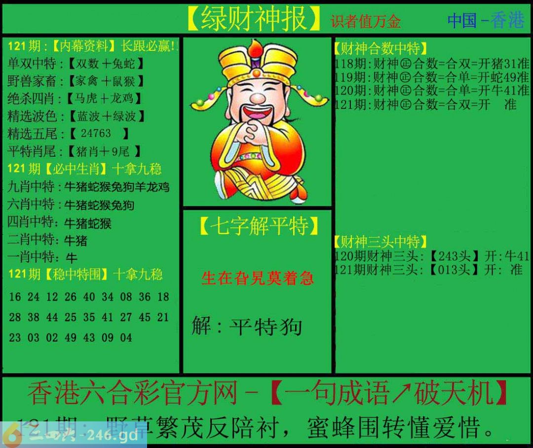 六合彩121期:绿色财神