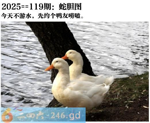 六合彩119期蛇胆图:今天不游水,先约个鸭友唠嗑。