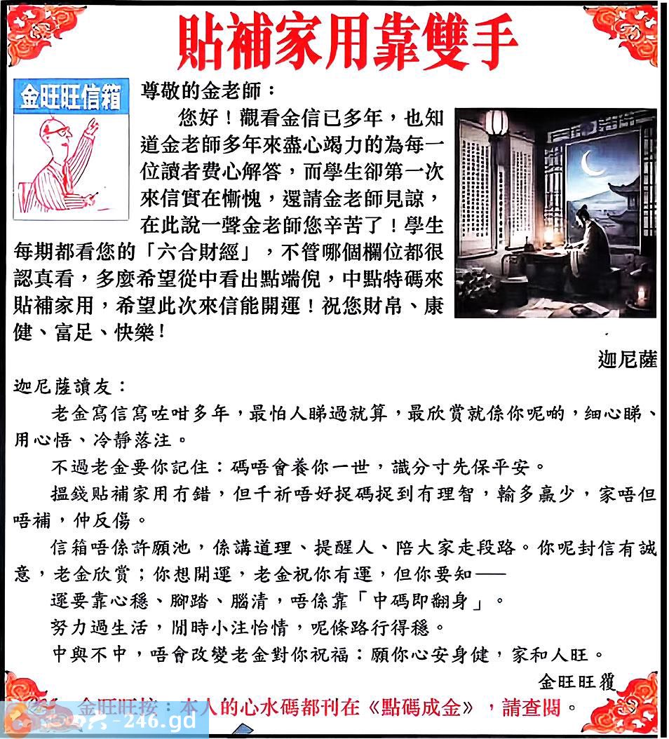 六合彩116期:金旺旺信箱彩民推荐→→《貼補家用靠雙手》