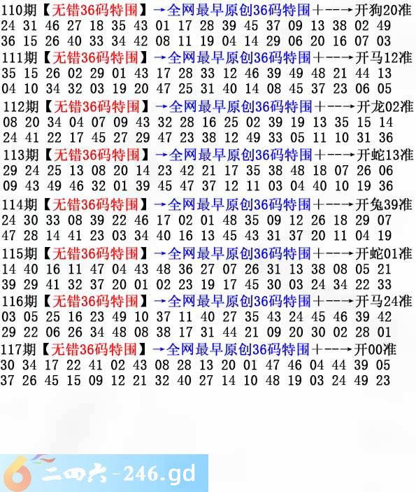 六合彩117期:无错36码