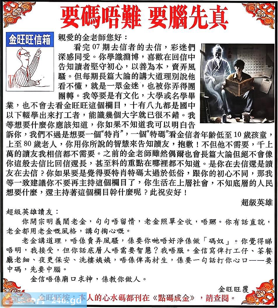 六合彩127期:金旺旺信箱彩民推荐→→《要碼唔難 要腦先真》