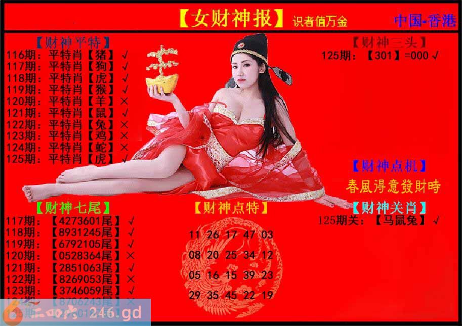 六合彩125期:女财神