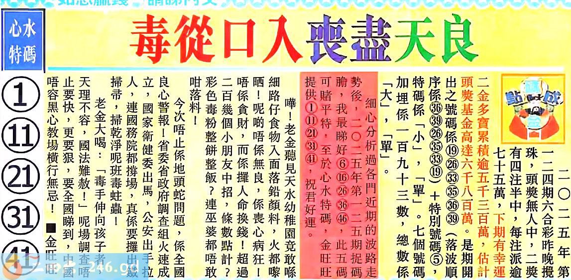 六合彩125期:金旺旺信箱彩民推荐→→《識黃連苦寒不如識人情冷暖》