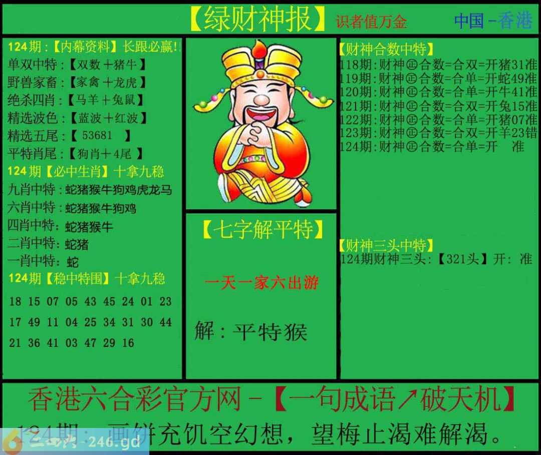 六合彩124期:绿色财神