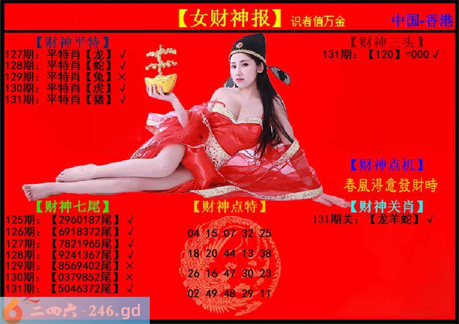 六合彩131期:女财神