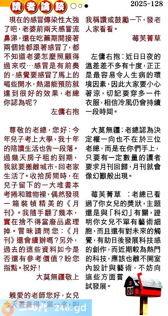 〖大莫無疆〗:老總認為決定權一向也不在於三位老總,而是在你們手上,只要有一定數量的讀者要求月刊回歸,月刊就會像幻獸般出現。