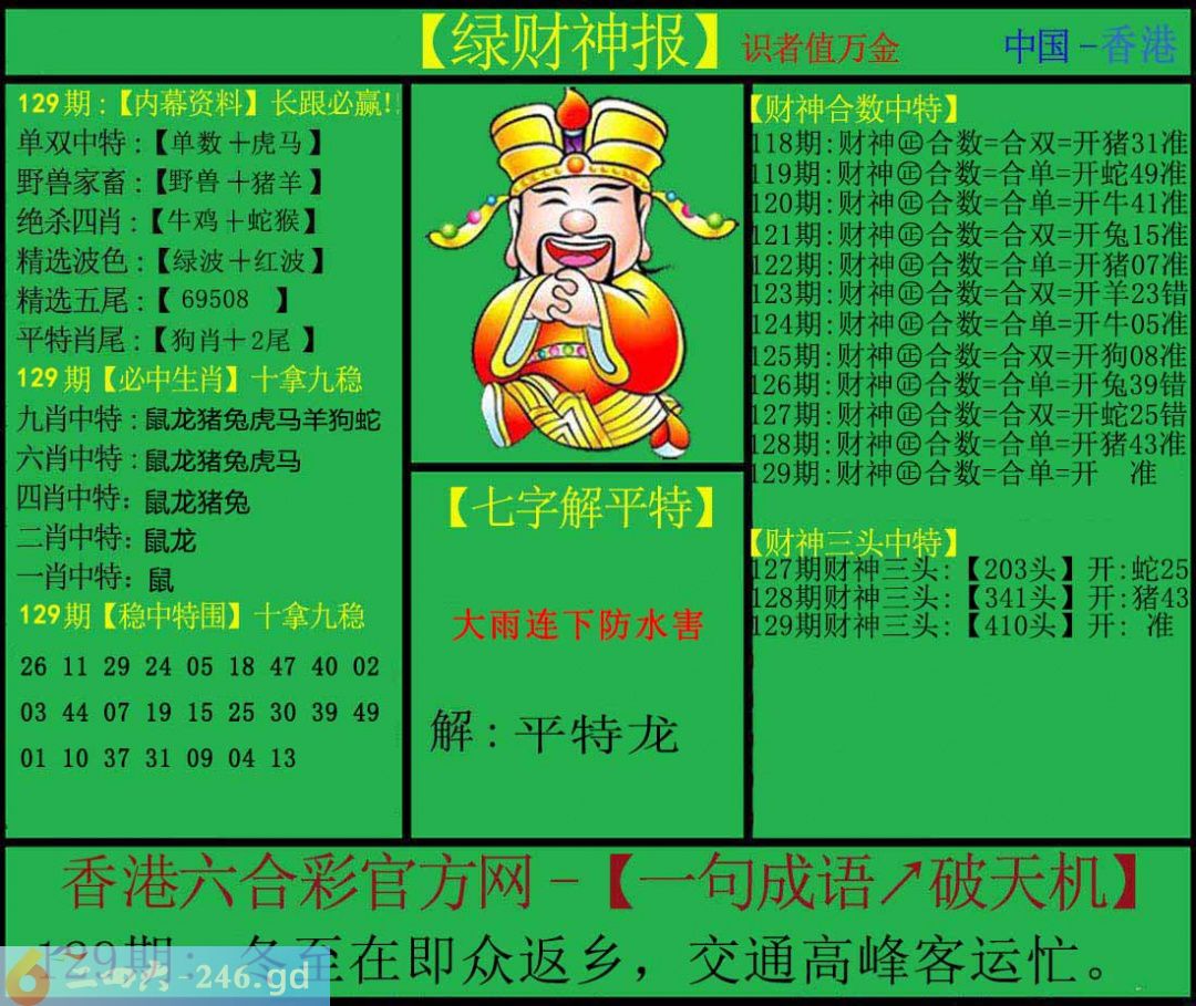 六合彩129期:绿色财神