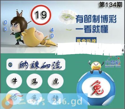 六合彩2025年134期正版彩图挂:19 爆:兔 挂牌成语:纳谏如流 挂牌出肖:牛马虎蛇兔猪