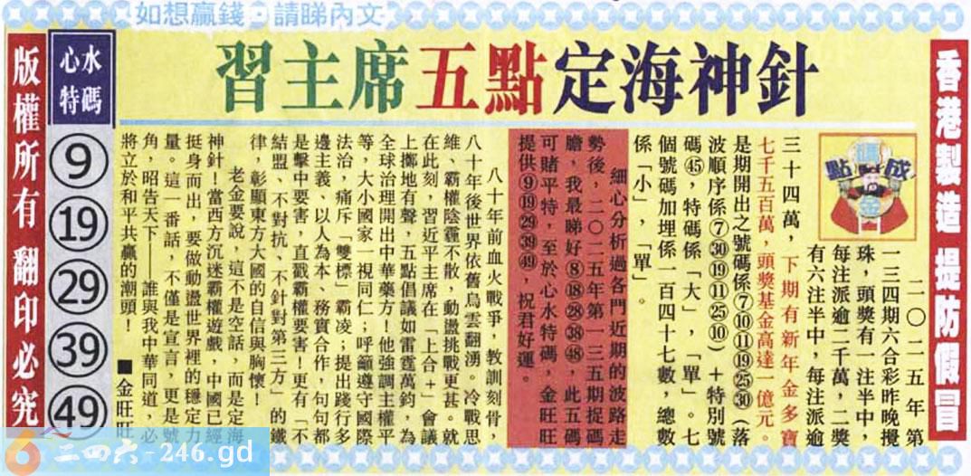 上一期2025134【2025-12-28】開獎號碼