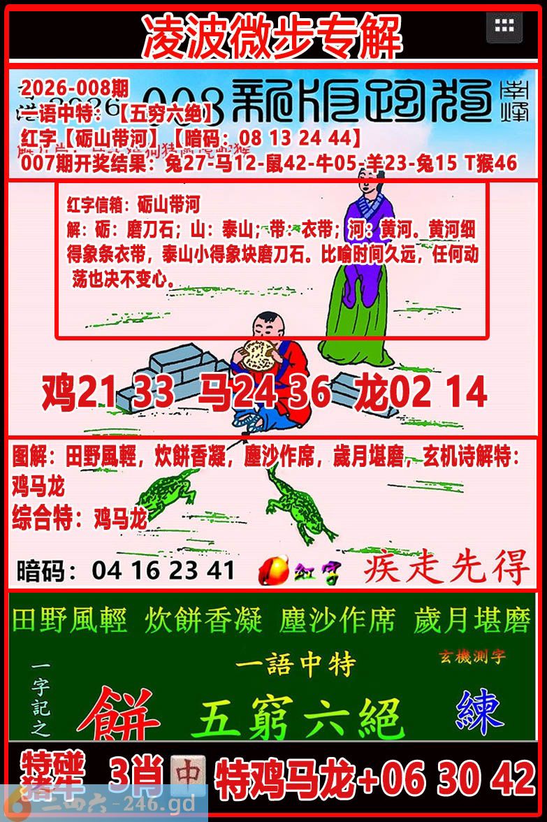 六合彩008期:【凌波微步】专解跑狗